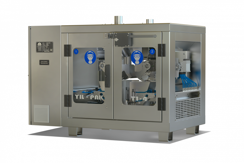 YILPAK T1-4 ürün dozajlama makinası, iş güvenliği kurallarına uygunluk, maximum hız, uzun kullanım ömrü, düşük bakım maliyeti ve yüksek hedef dozajlama hassasiyeti için tasarlanmıştır. Seçilen dozajlama kefesi ölçüsü ve ürün dansitesi kriterlerine bağlı olarak 100 – 3000 gr. aralığında yüksek hassasiyetle ürün dozajlama işlemini gerçekleştirir.